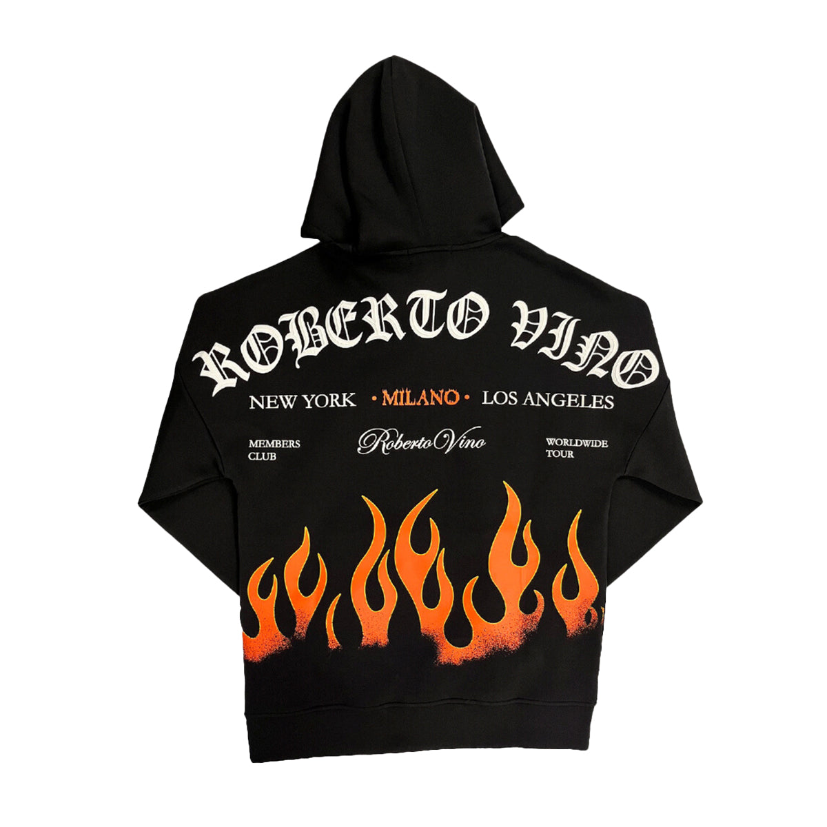 Roberto Vino Milano Mens Flame Hoodie RVHO3FR Black