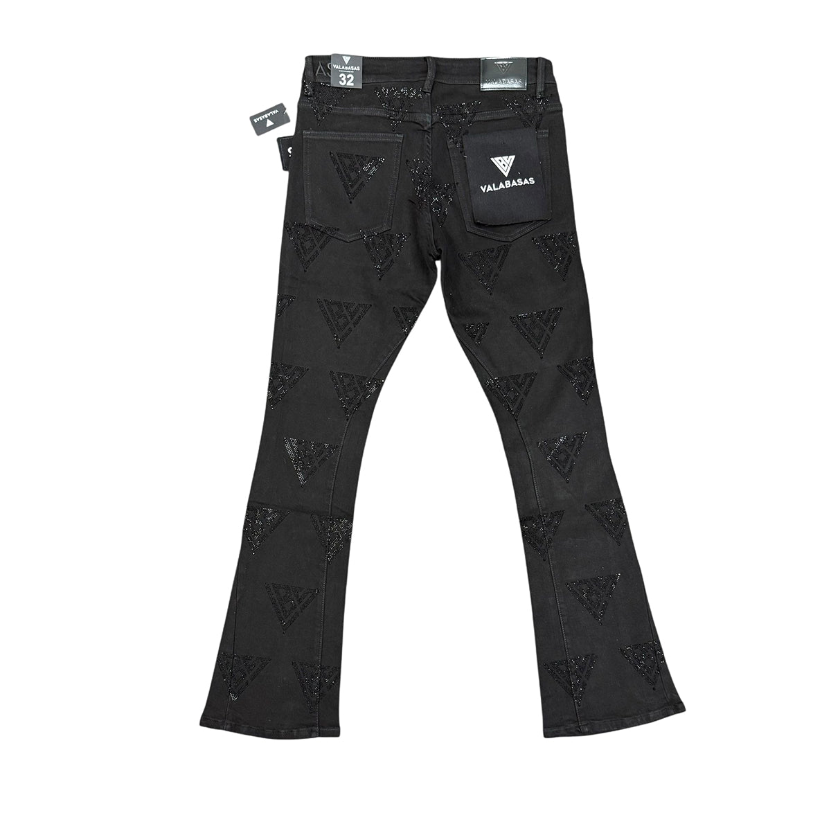 Premium stacked denim jeans featuring an extended inseam, tapered silhouette, and signature Valabasas styling.