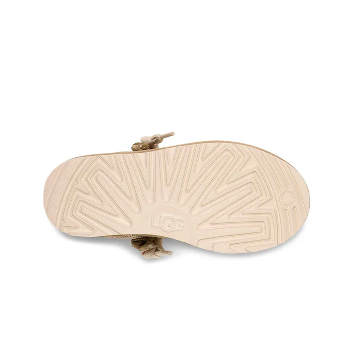 With the ease of a sneaker and the comfort of a slipper, our Lo Lowmel is all about impeccable vibes. This newcomer to the Lowmel family features a lower profile that begs for baggy jeans, '90s jams, and seaside hangs. The upper features a textured mix of genuine suede and recycled ballistic canvas mesh, giving the quintessential sneaker style. On the bottom, you'll find our springy sugarcane EVA outsole that offers signature UGG comfort and makes these feel extra light on the foot
