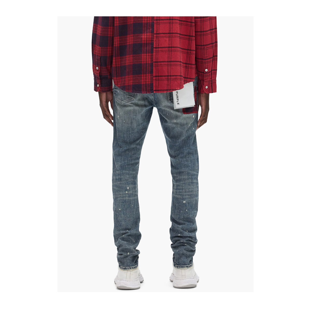 Purple Brand Mens Plaid Patch Skinny Fit Jeans P001-SYDP425 Mid Indigo