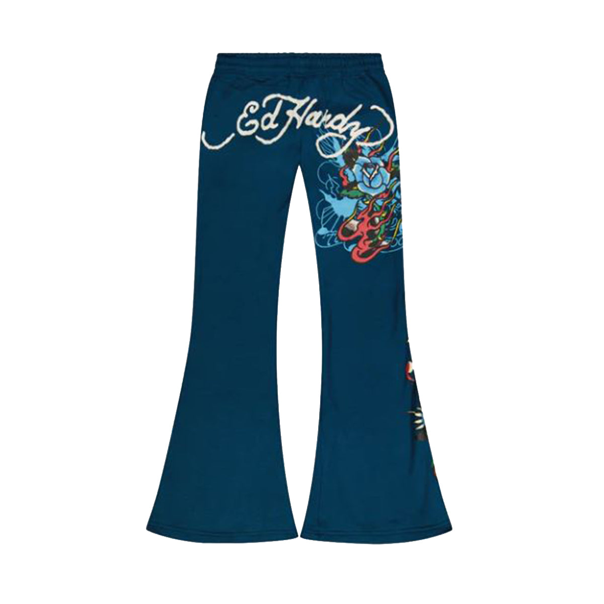 Ed Hardy Womens Flame Rose Bootcut Sweatpants EHW8206-1 Sapphire