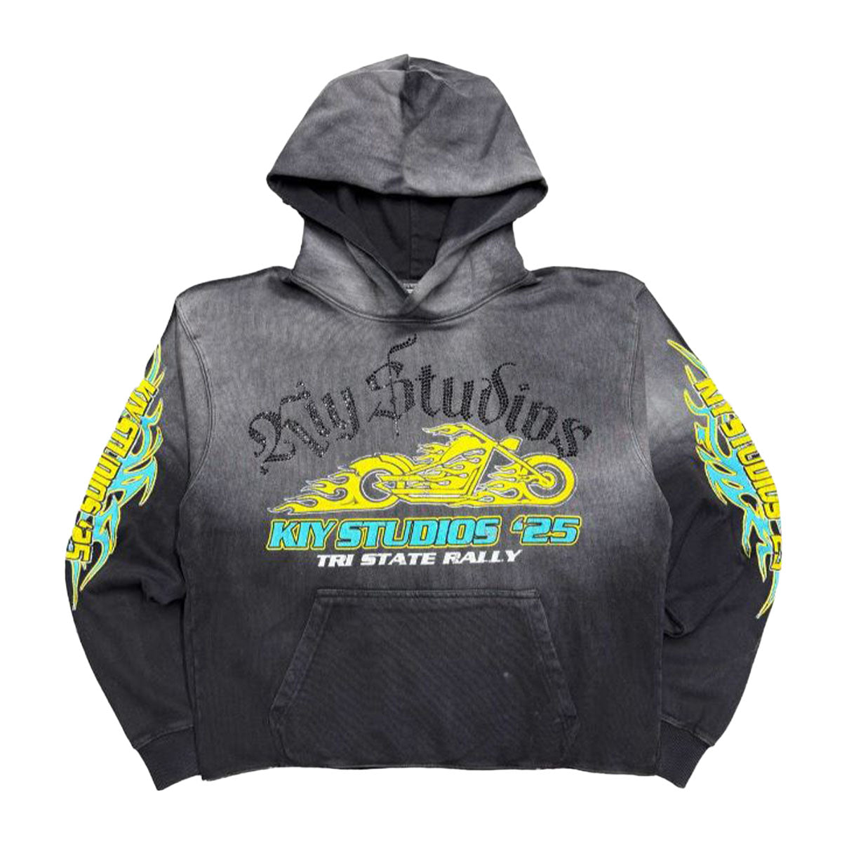 Kiy Studios Mens Tri State Rally Pullover Hoodie Black Sun Faded