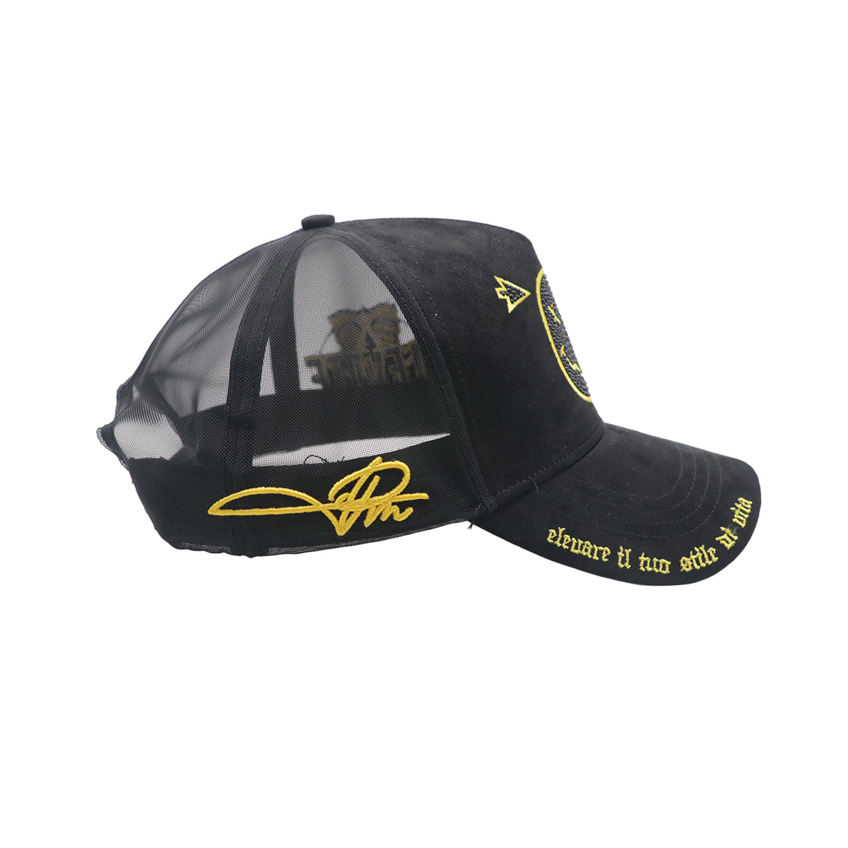 Premium Milano Unisex Happy Face Trucker Hat 2620 Black/Gold