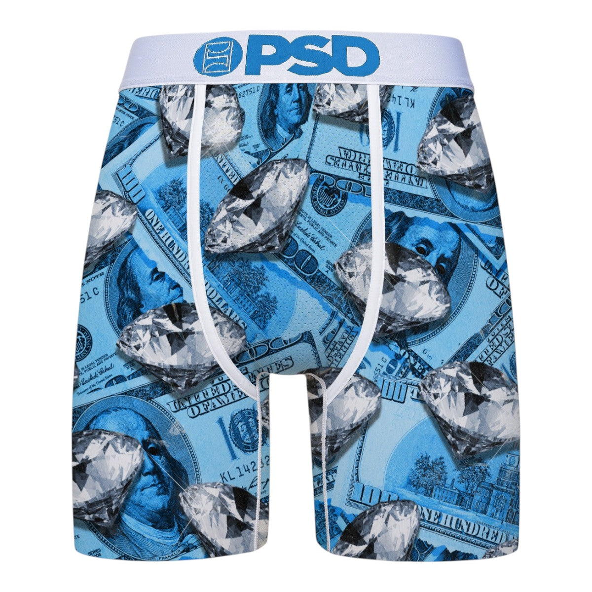 Vibrant Blue Fortune themed boxer briefs with PSD’s signature stretch fit.