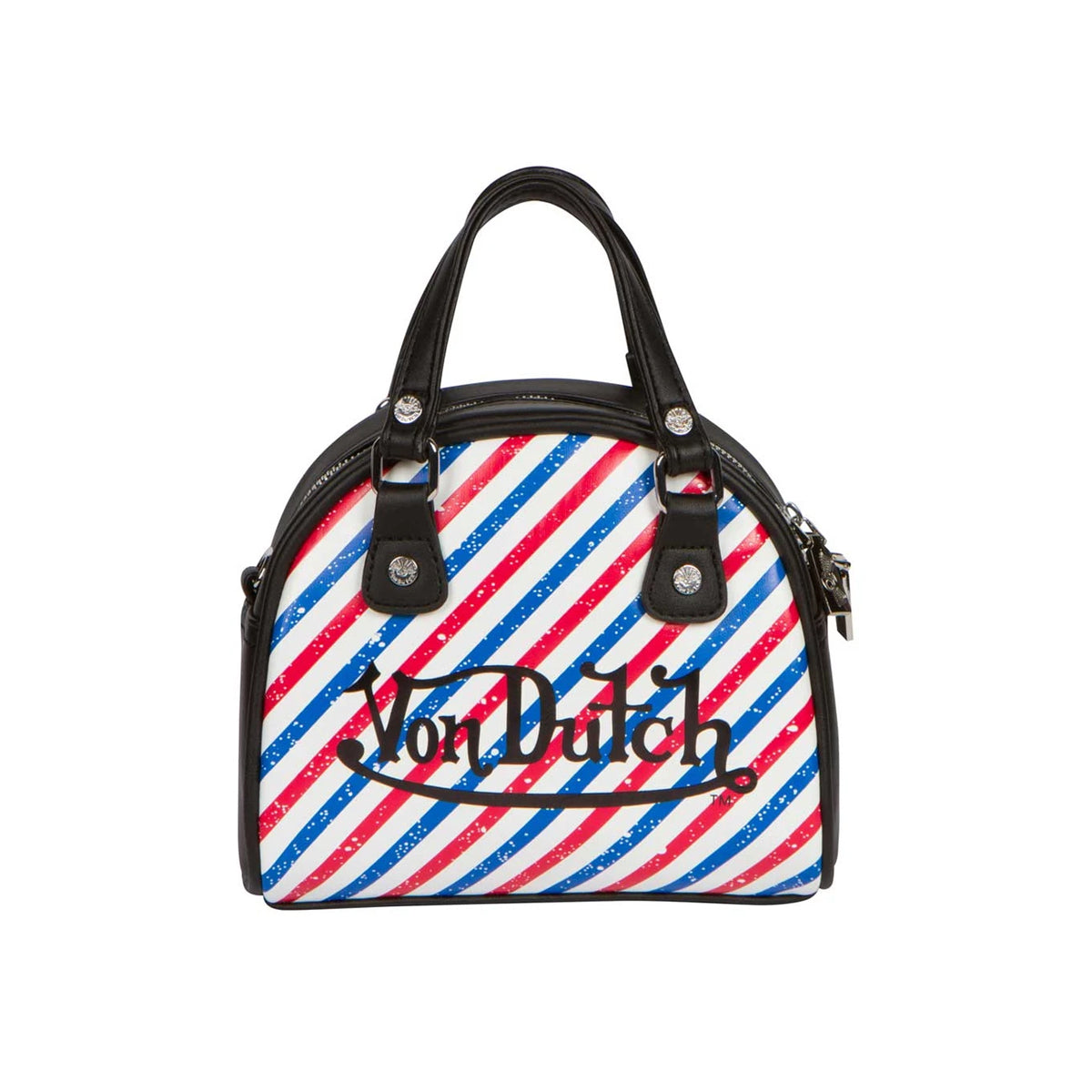 Von Dutch Mens BarberShop Stripe Bowler Duffle Bag BB2181-BarberShop Black/White/Red/Blue