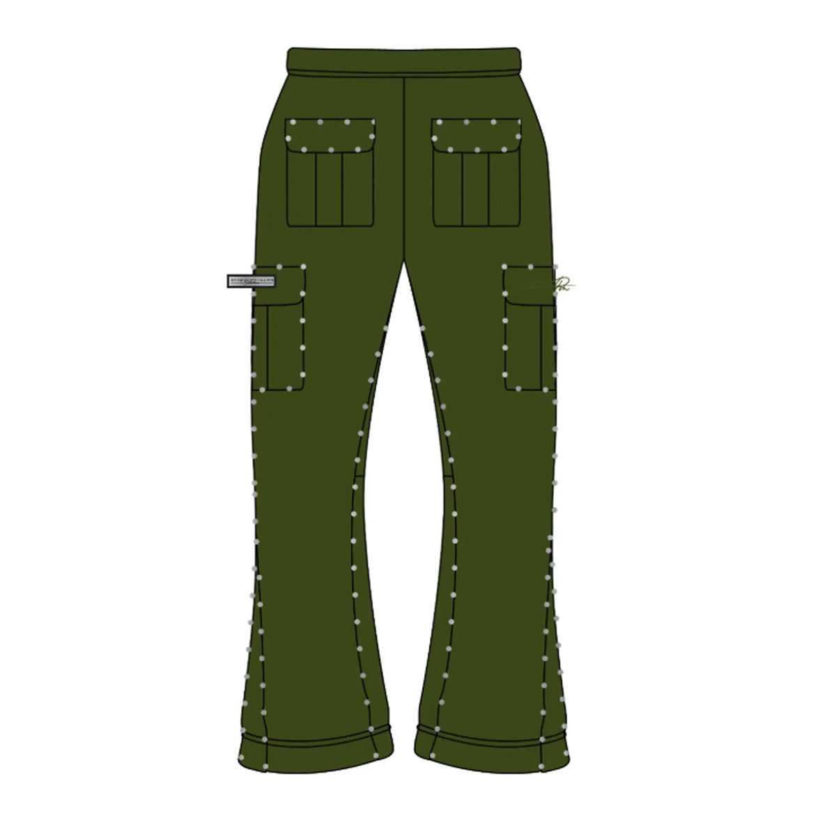 Premium Milano Mens Destiny Stacked Cargo Sweatpants B22CPNT-102-GRN Green