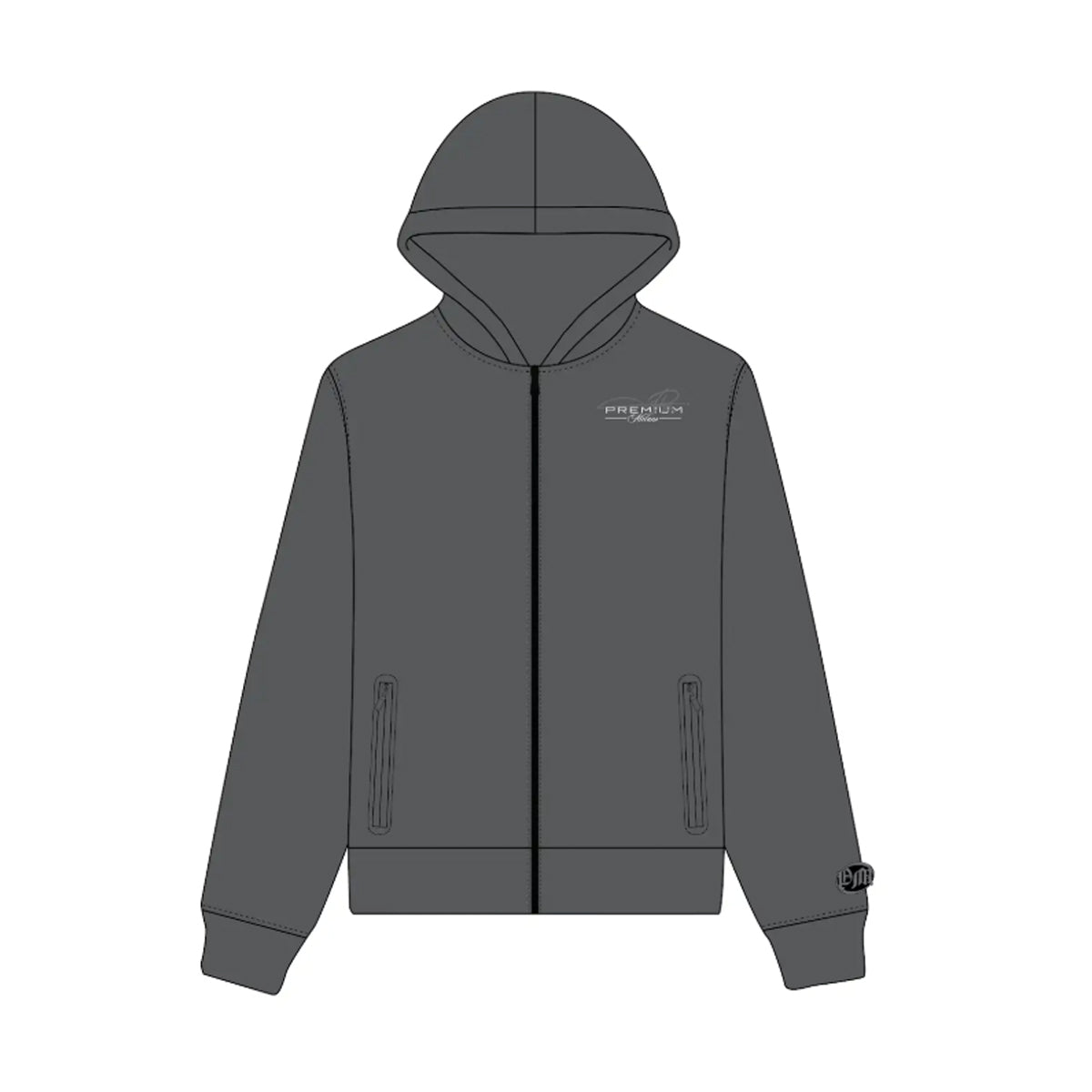Heavyweight French terry zip hoodie with refined tailoring and bold graphic detail—Premium Milano’s elevated take on tech-driven streetwear