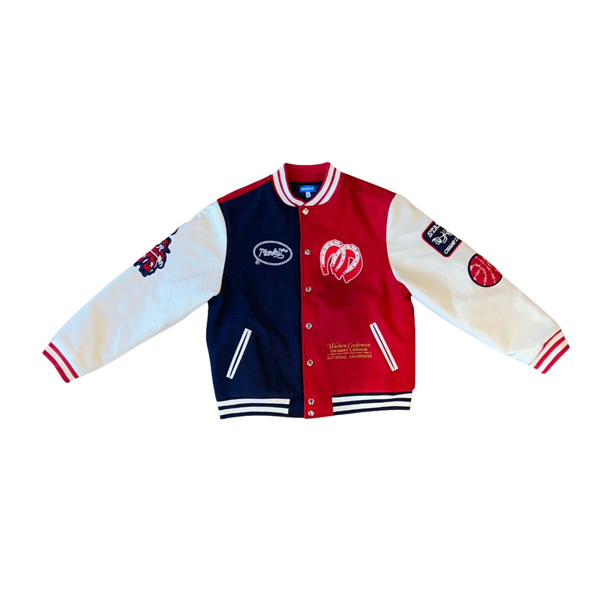 Market Studios Mens Old West Varsity Jacket MKT25FW-JK0281-NVSA Navy/Salsa
