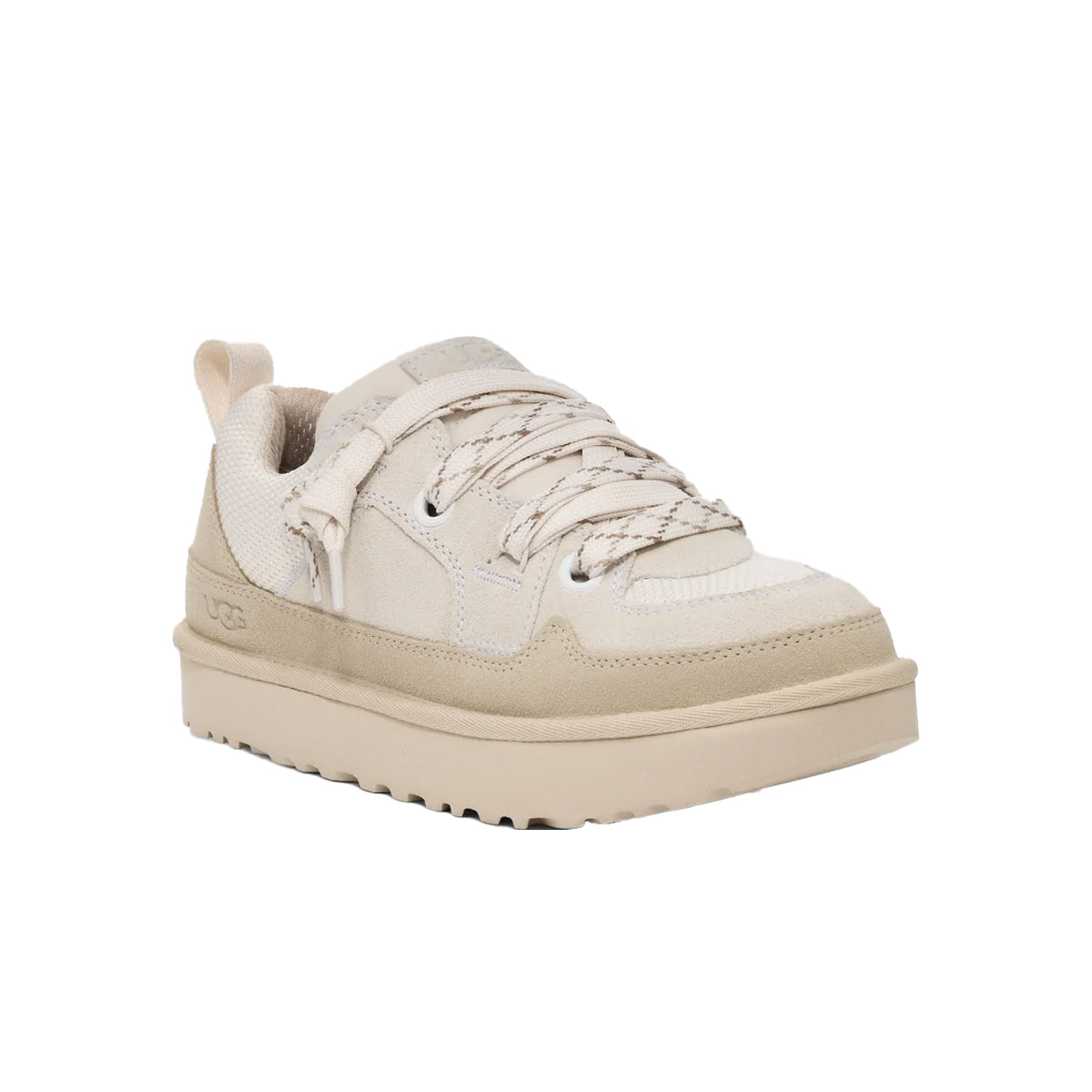 With the ease of a sneaker and the comfort of a slipper, our Lo Lowmel is all about impeccable vibes. ​This newcomer to the Lowmel family features a lower profile that begs for baggy jeans, '90s jams, and seaside hangs. The upper features a textured mix of genuine suede and recycled ballistic canvas mesh, giving the quintessential sneaker style. On the bottom, you'll find our springy sugarcane EVA outsole that offers signature UGG comfort and makes these feel extra light on the foot