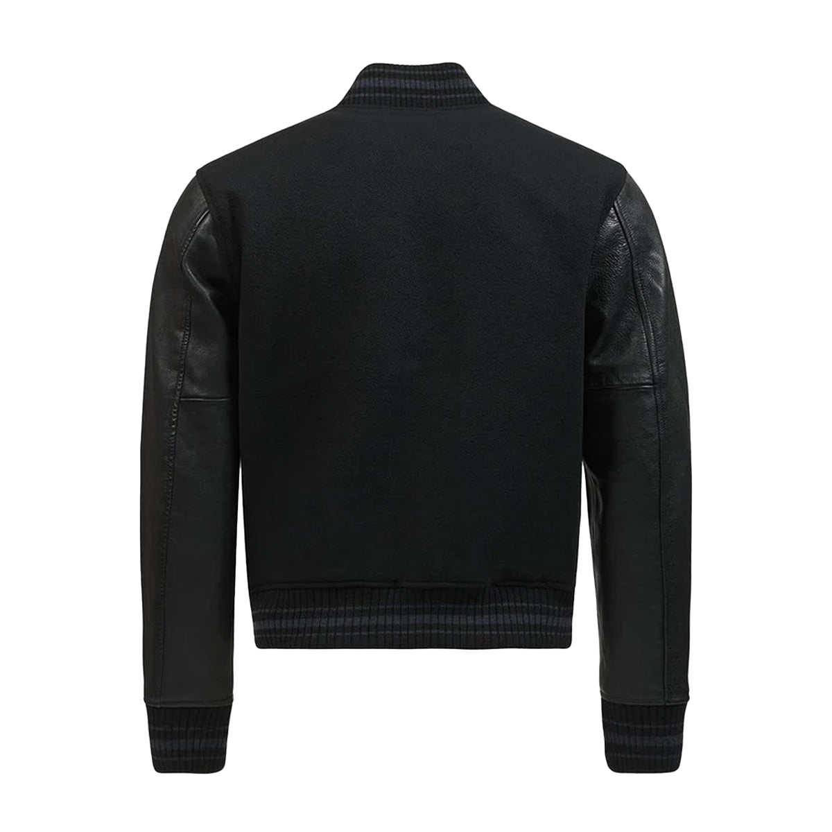 With its wool-blend body, contrasting leather sleeves, and striped ribbed trim, the letterman jacket has been an essential part of the high school and college athlete's wardrobe for generations. Polo Ralph Lauren's version is modernized this season in a tonal black palette