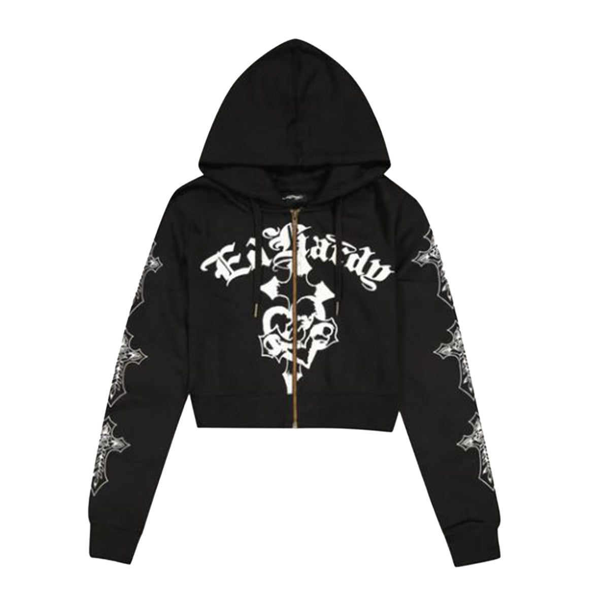 Ed Hardy Womens Crosses Zip Up Hoodie EHW1800-85 Black